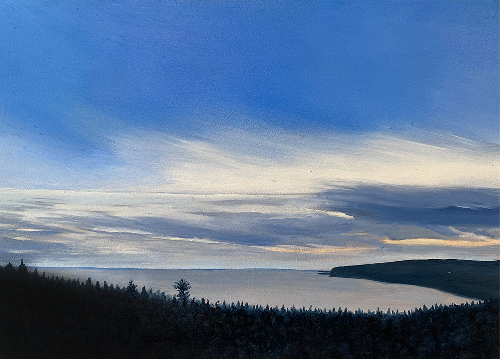 "My paintings are of the views that I inhabit. They are of places I know intimately or discover anew. I consider earth, water, and sky."