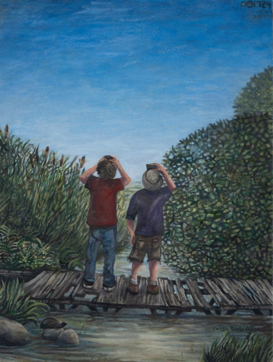 I create autobiographical narrative paintings that portray recollections of daily life, from the mundane to the quietly extraordinary. Personal photos and sketchbook entries serve as references to recreate the mood of real places through texture, light, and shadow. Figures inspired by people from my life occupy these settings as they engage in search, observation, and introspection. Although these works appear still and serene, exaggerated perspectives and visual cues of tension evoke the dreamlike state between familiar and unreal – that foggy feeling of recollection.