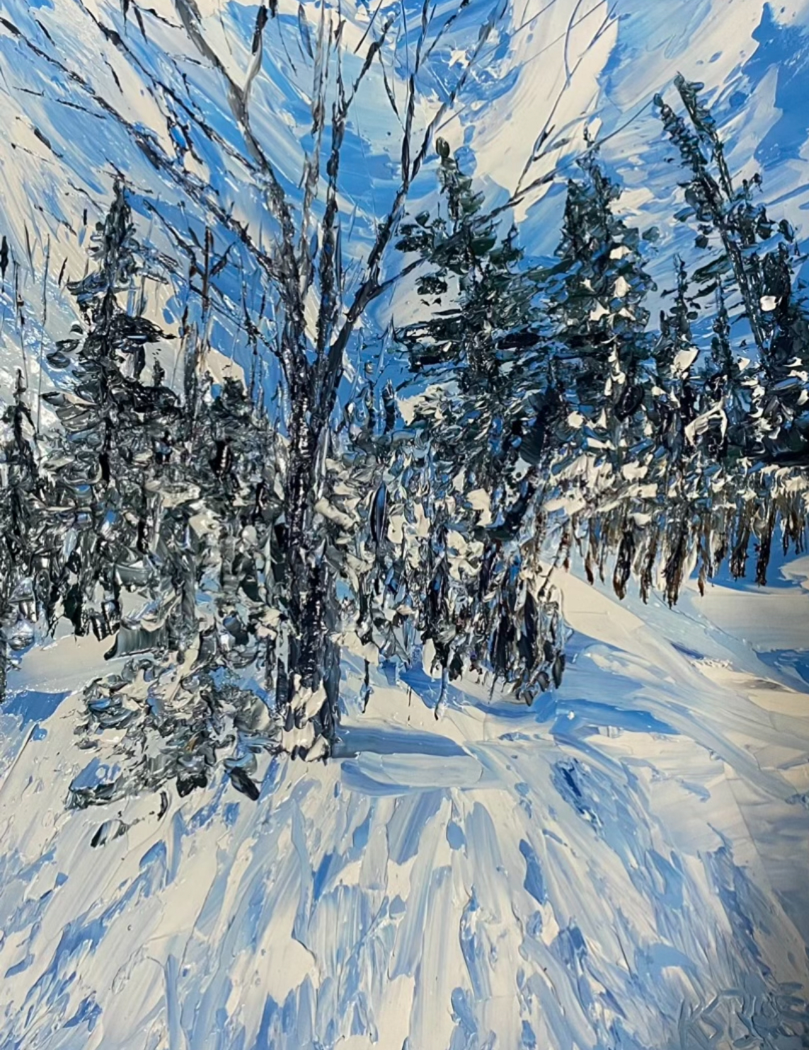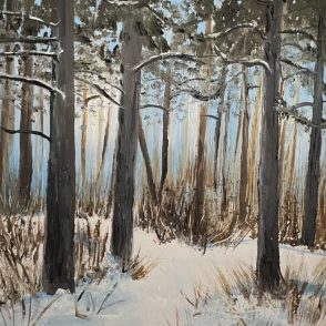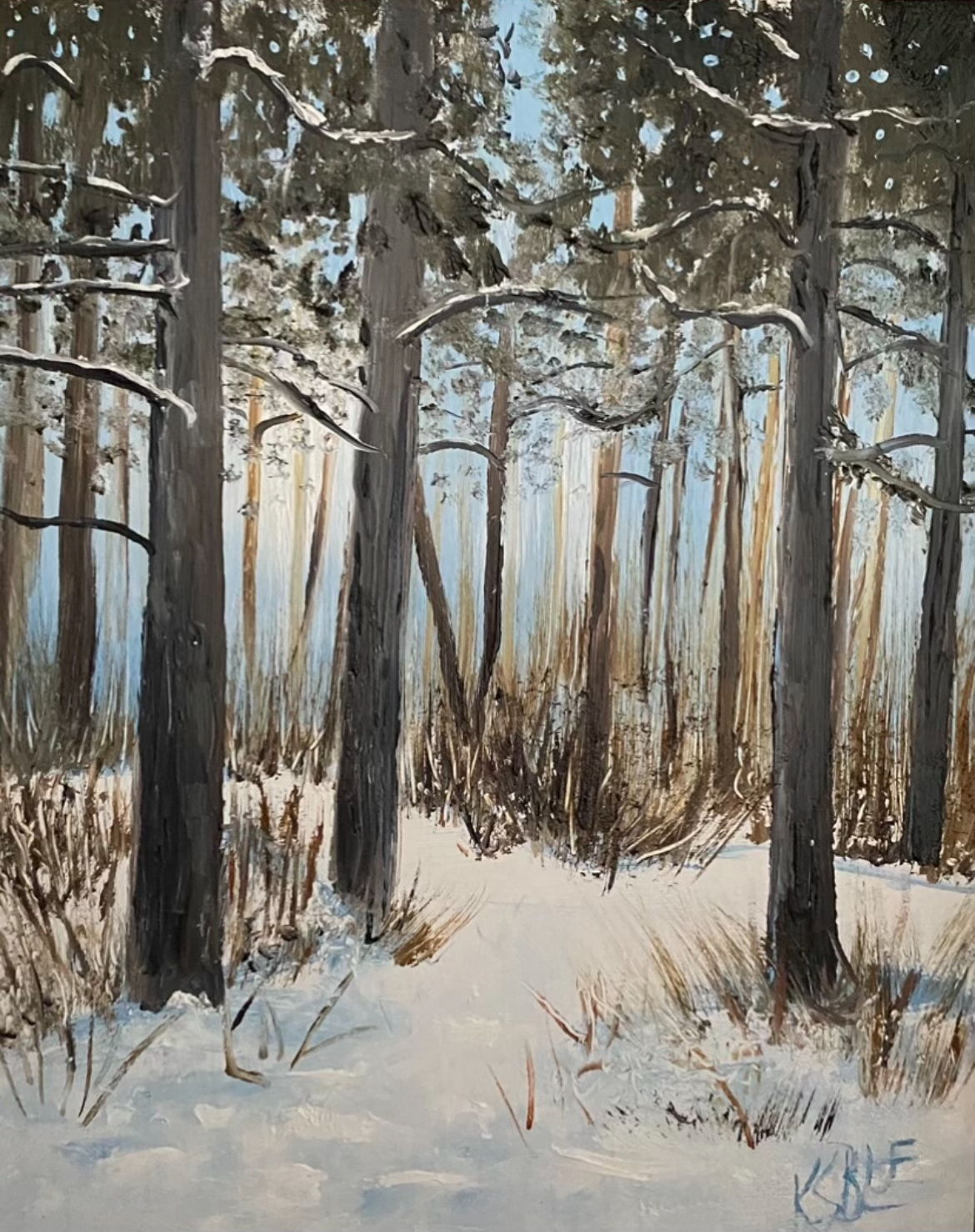 Karen Savage Blue paints with oils on cradled birch panels.