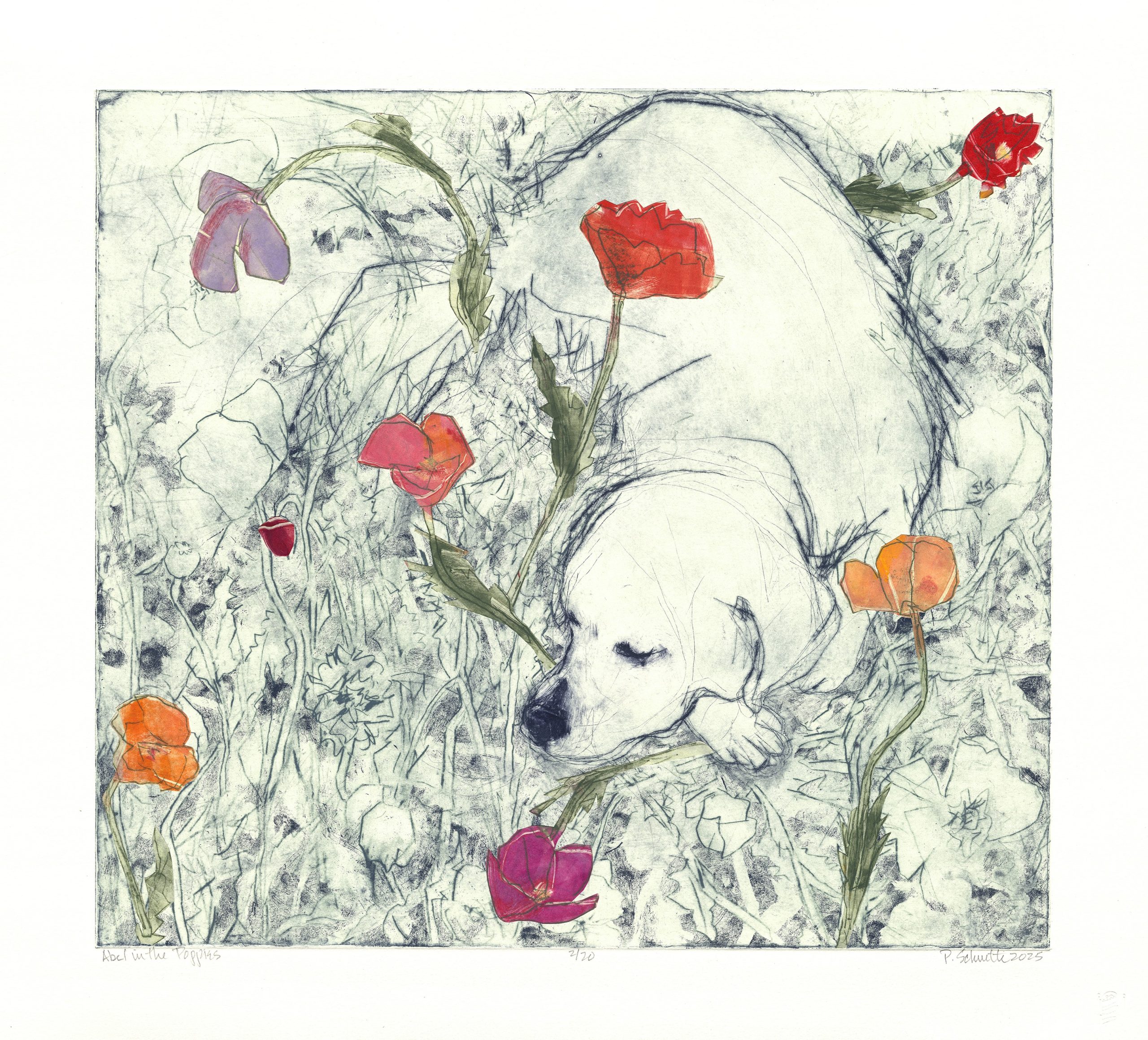 Paula Schuette Kraemer studied art history at Vassar College and completed her undergraduate work in fine art at the University of Wisconsin-Madison. She received her Master’s Degree in Fine Art from the University of Wisconsin where she studied both printmaking and ceramics with Warrington Colescott and Bruce Breckenridge. A close alliance with Tandem Press has afforded her the opportunity to learn from many of the artists who worked there. All of her work is created and printed at Open Gate Press, a workshop and studio founded by Kraemer and located in Madison, Wisconsin. She and her husband, David, enjoy a busy life with their children and grandchildren.