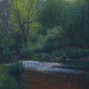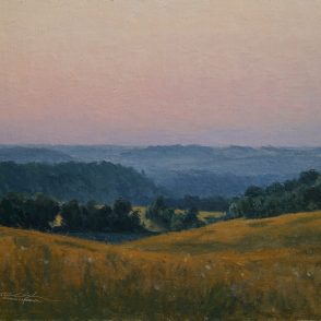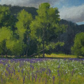 “We are here, just for a time. The practice of painting on location deepens this understanding. It isn’t long before I find myself defending my work against mercurial skies and the constant march of the sun. Shadows move, and colors change, leaving me to paint from memory.