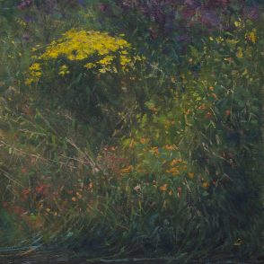 The field studies are finished works in their own right. In the studio, these paintings return me to the scene, bringing back not only what I saw but also the sounds, smells, and stories shared by the passing stranger. It is all in the paint—along with dust from the fields and grit from the road. The work reflects the visual and visceral experiences of a vibrant and spontaneous exploration of our connection to the natural world.”