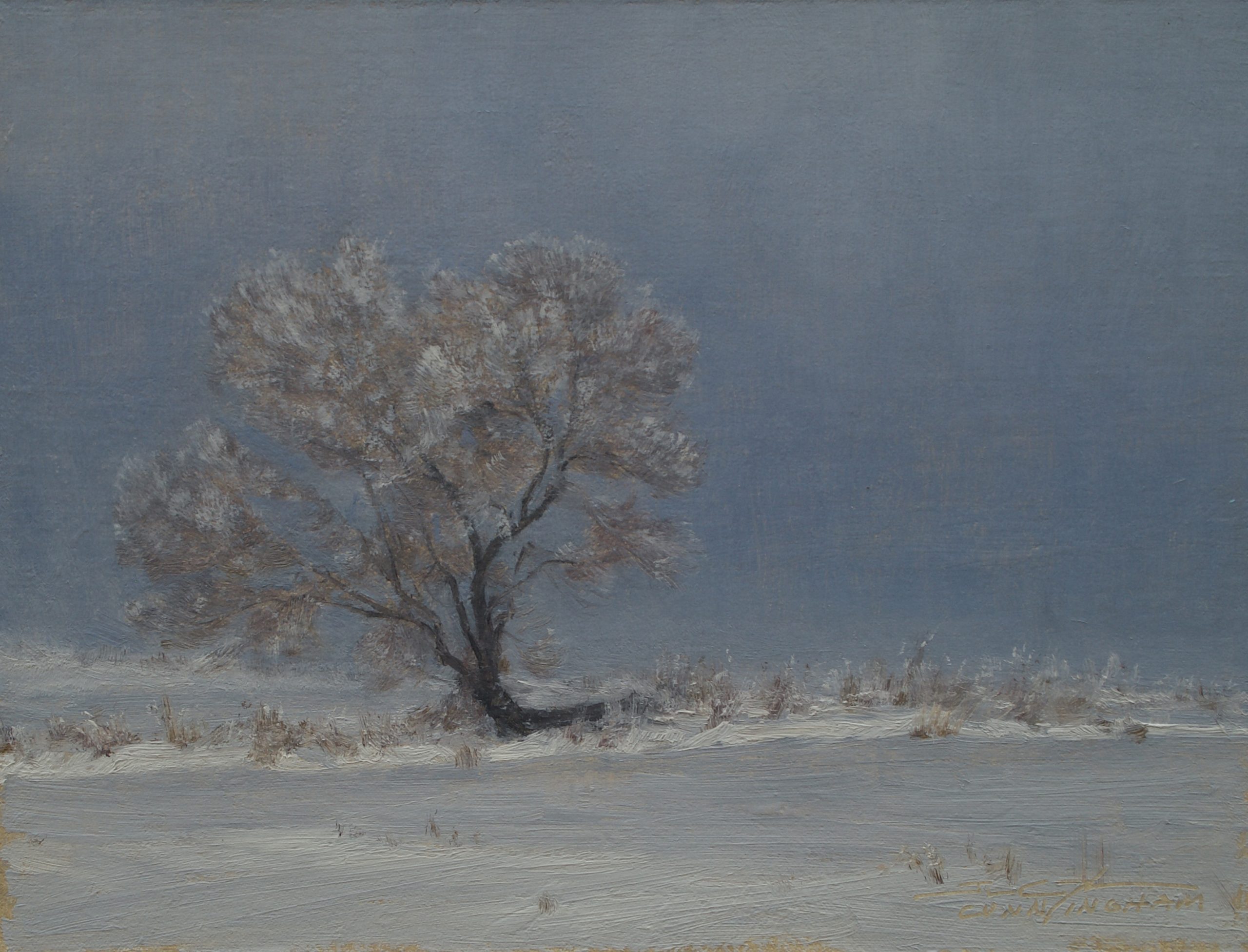 The artist will be present at the opening reception on Saturday, December 6 from 2-5 pm. Joshua Cunningham gave an artist talk + demonstration at Groveland Gallery on Saturday, December 13, and the completed painting is at the gallery, titled “In Winter.” The exhibition runs concurrently with Painting Without Words by Lauren Stringer. Both shows continue through January 10, 2026.