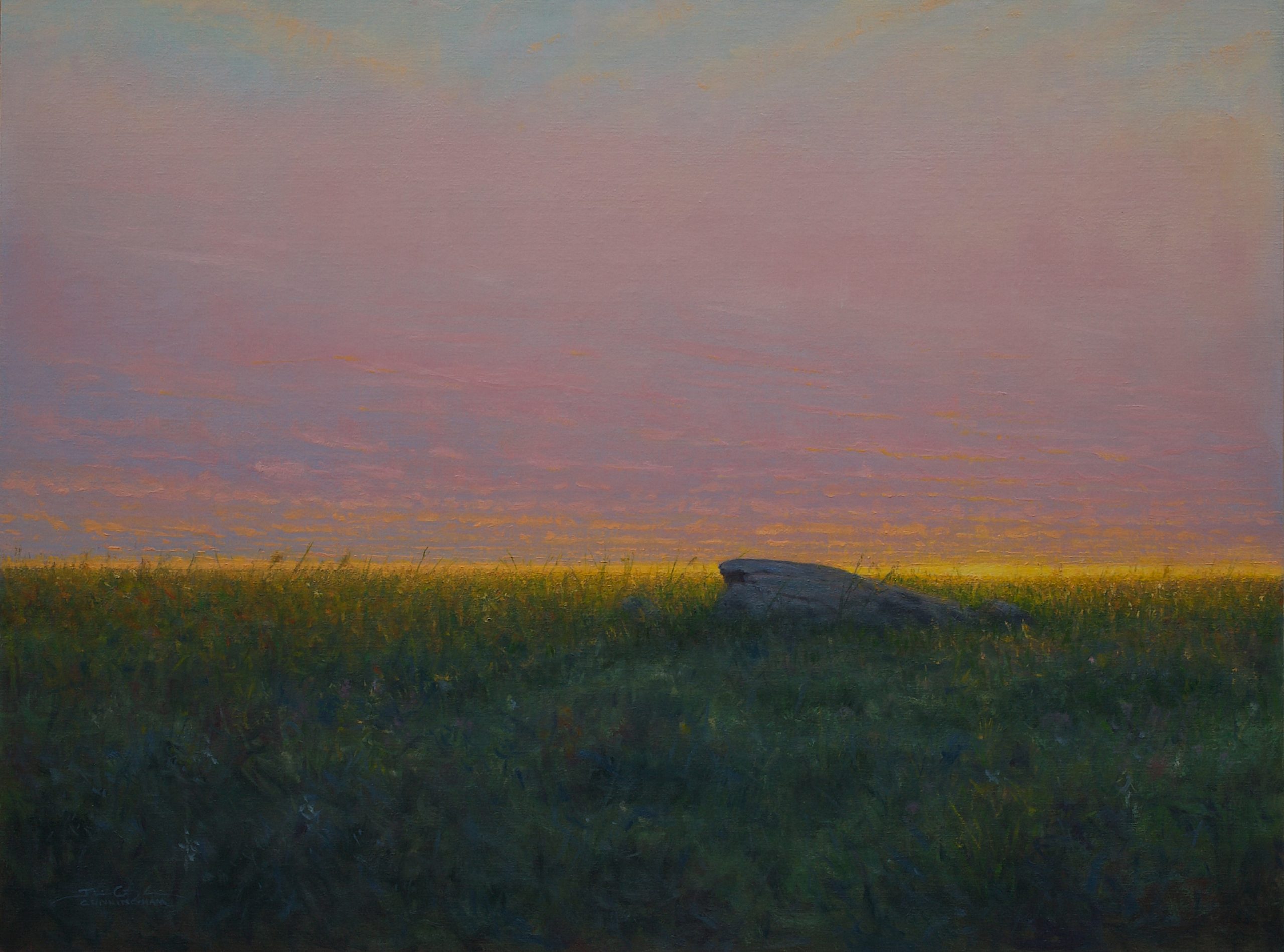 Groveland Gallery is pleased to present Invitations Answered, an exhibition of new paintings by Joshua Cunningham, opening December 6. A Minnesota native from rural Isanti County, Cunningham currently lives and works in St. Paul. He is a member of the Outdoor Painters of Minnesota, Oil Painters of America, and the American Impressionist Society. His work has garnered national attention from Plein Air Magazine and Informed Collector. He was commissioned to create numerous artworks including a major painting to commemorate the 125th Anniversary of The University of St Thomas and has been a frequent Artist in Residence at several art centers as well as the St Croix Watershed Research Station, part of the Science Museum of Minnesota. He has exhibited with the Science Museum of Minnesota, The Bell Museum of Natural History, and The Minnesota Marine Art Museum. In 2024, his work was archived as part of a cultural time capsule on the moon, in the Lunar Codex, aboard the Odysseus Lander.