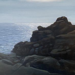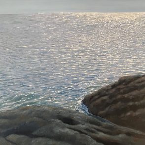 Groveland Gallery is pleased to present an exhibition of paintings by Minneapolis artist, Kit Wilson. A full-time artist, Wilson began exhibiting at Groveland Gallery in 2002. Lost Mountain will consist of 27 paintings of Lake Superior’s North Shore. Wilson contemplates Superior’s shifting characteristics from a single vantage point, documenting the lake’s surface, and changes in light and season. This sweeping grandeur belies the small format of the artwork; the scale invites a close view of the fine detail and micro brushwork Wilson is known for. Wilson writes of her work: