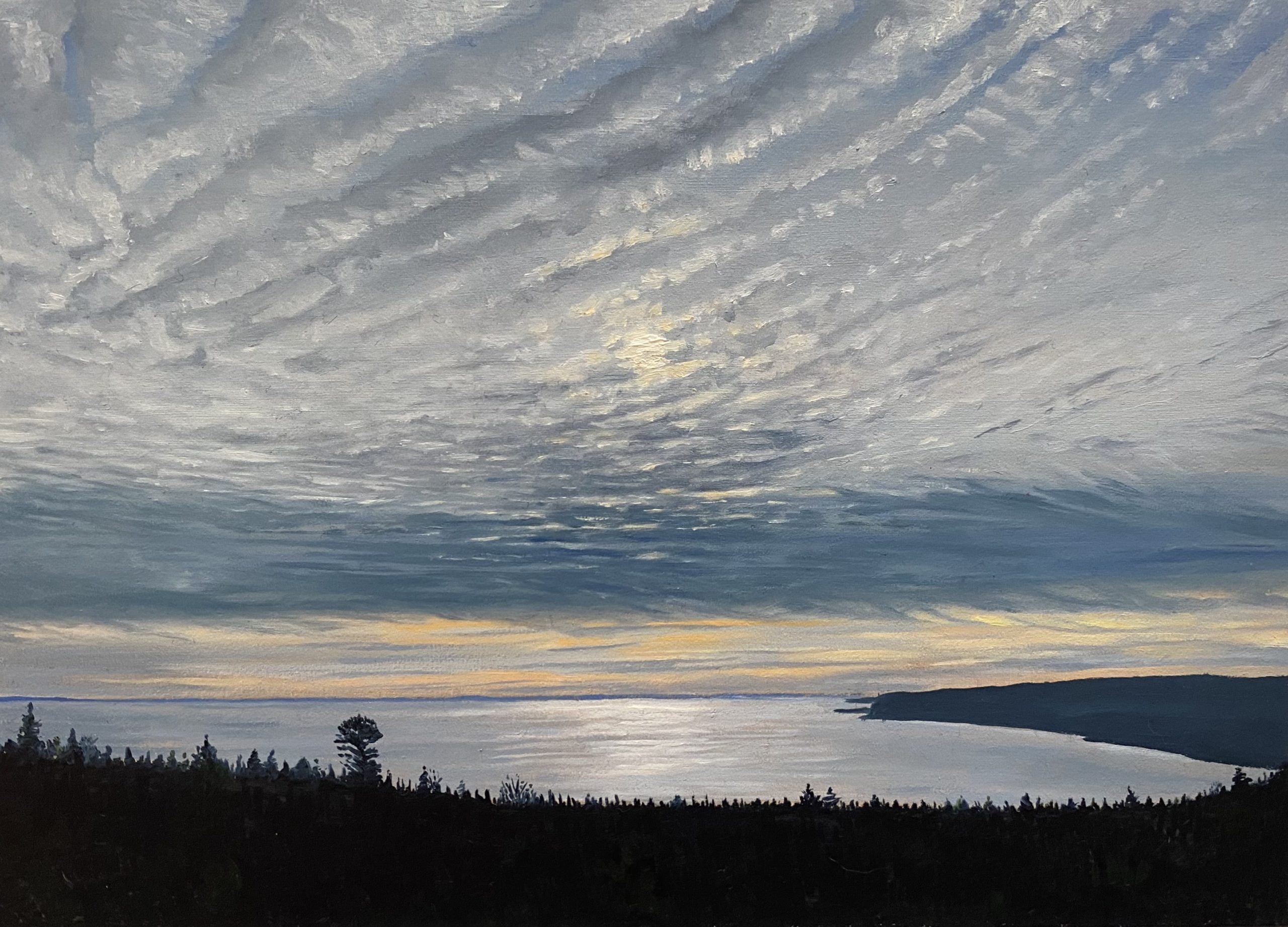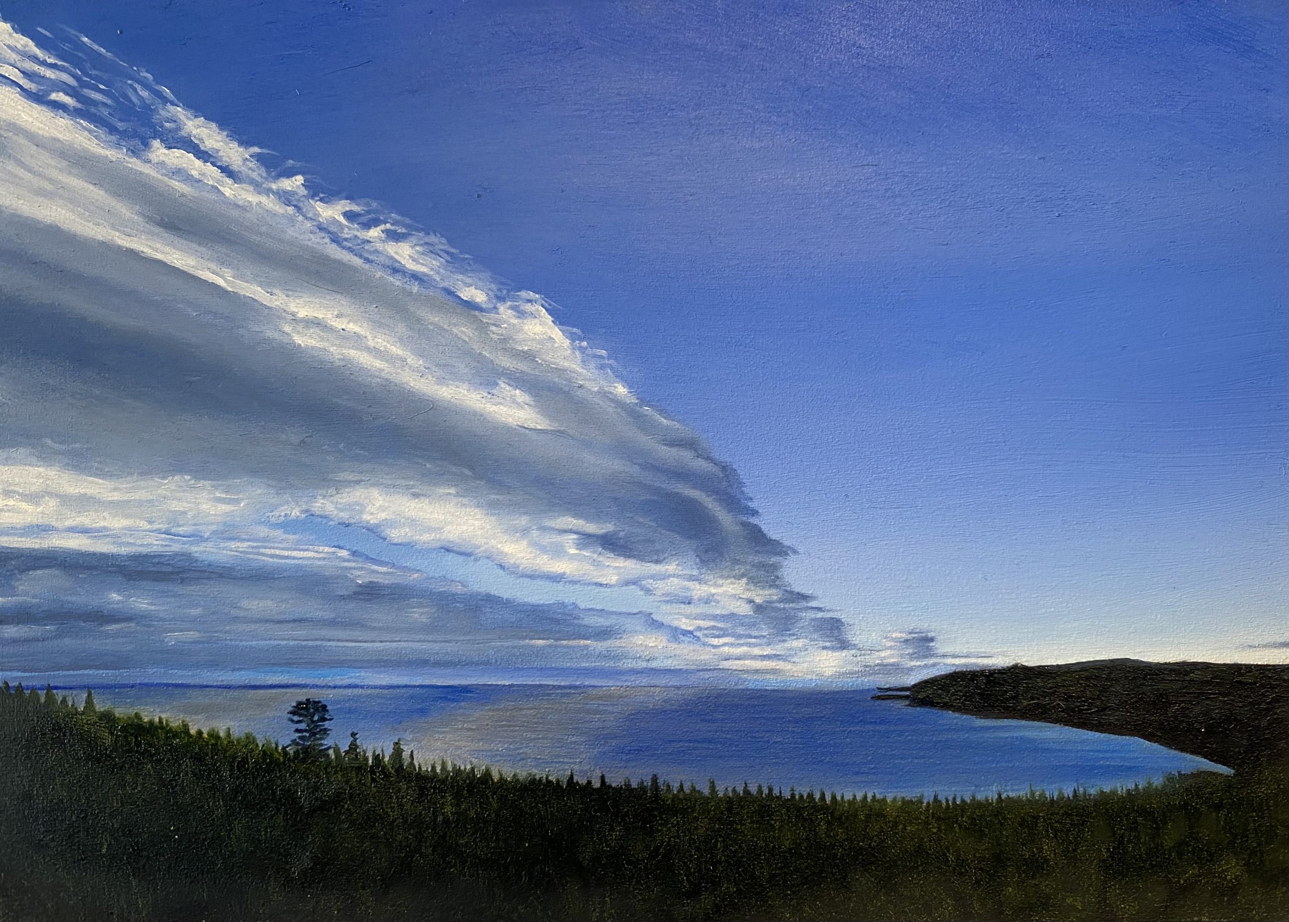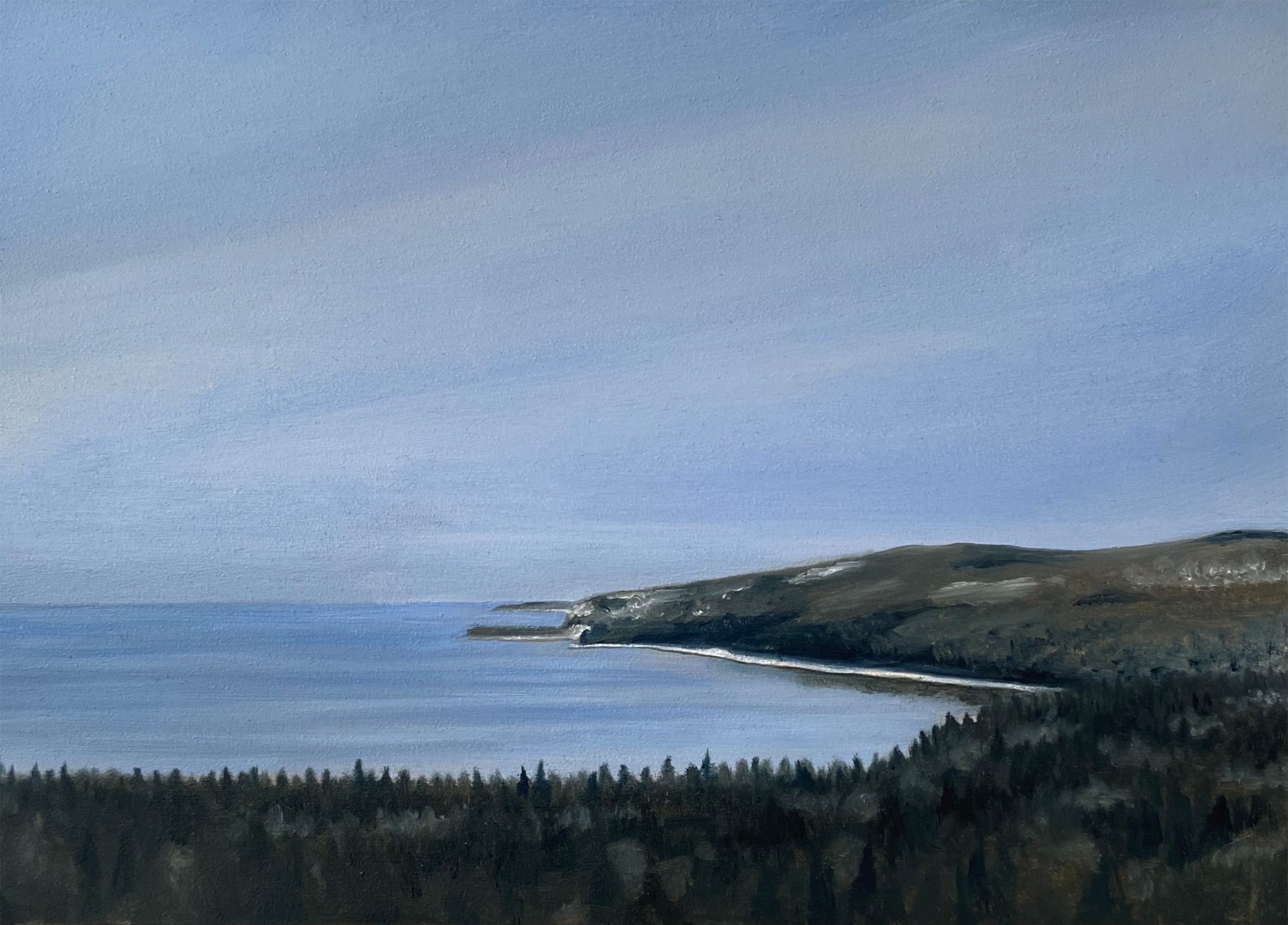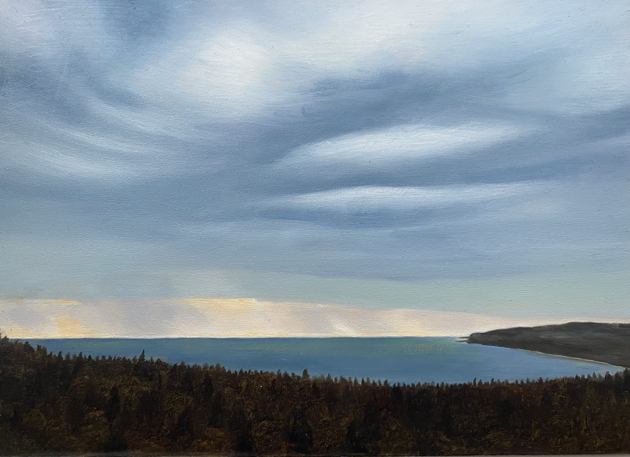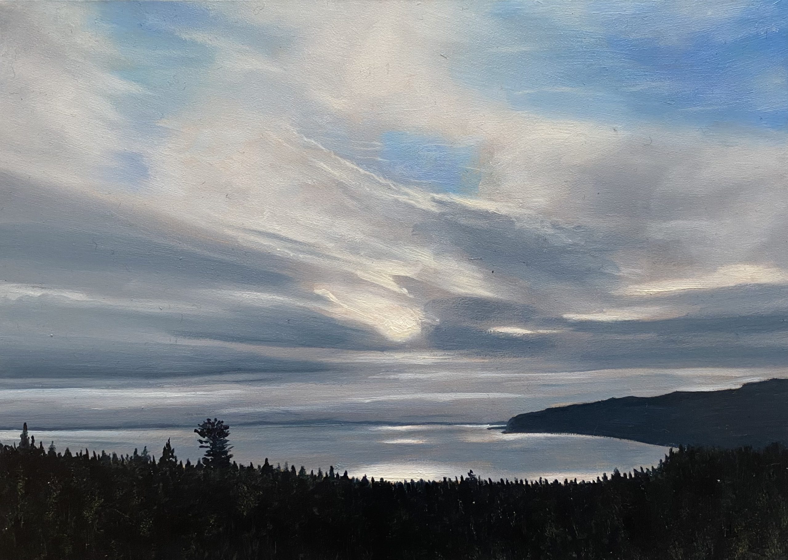 Groveland Gallery is pleased to present an exhibition of paintings by Minneapolis artist, Kit Wilson. A full-time artist, Wilson began exhibiting at Groveland Gallery in 2002. Lost Mountain will consist of 27 paintings of Lake Superior’s North Shore. Wilson contemplates Superior’s shifting characteristics from a single vantage point, documenting the lake’s surface, and changes in light and season. This sweeping grandeur belies the small format of the artwork; the scale invites a close view of the fine detail and micro brushwork Wilson is known for. Wilson writes of her work:
