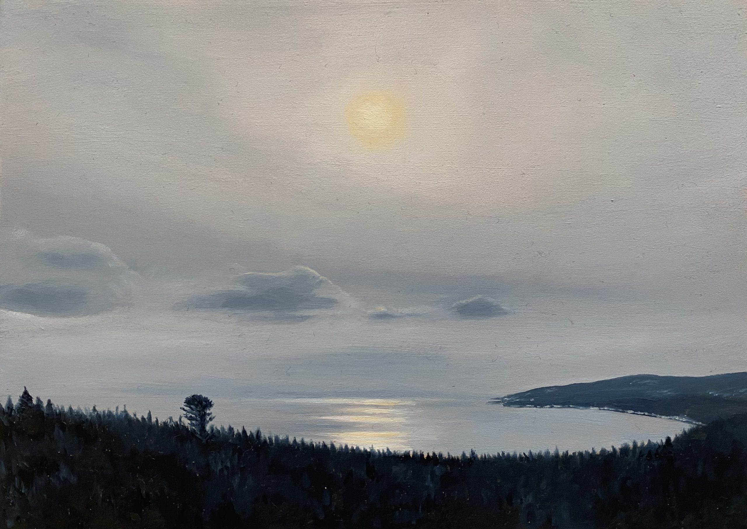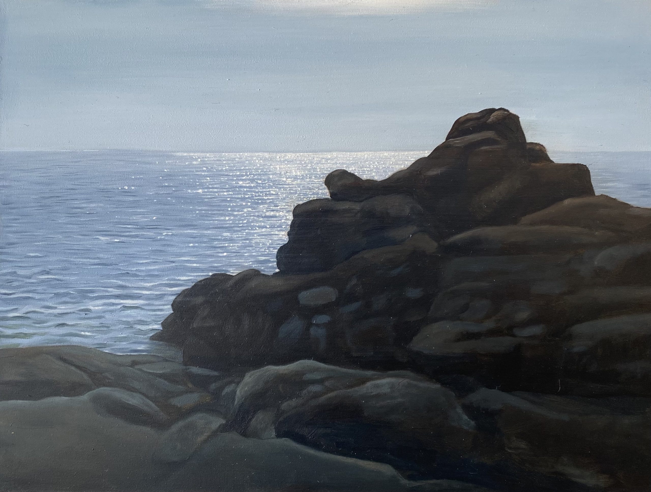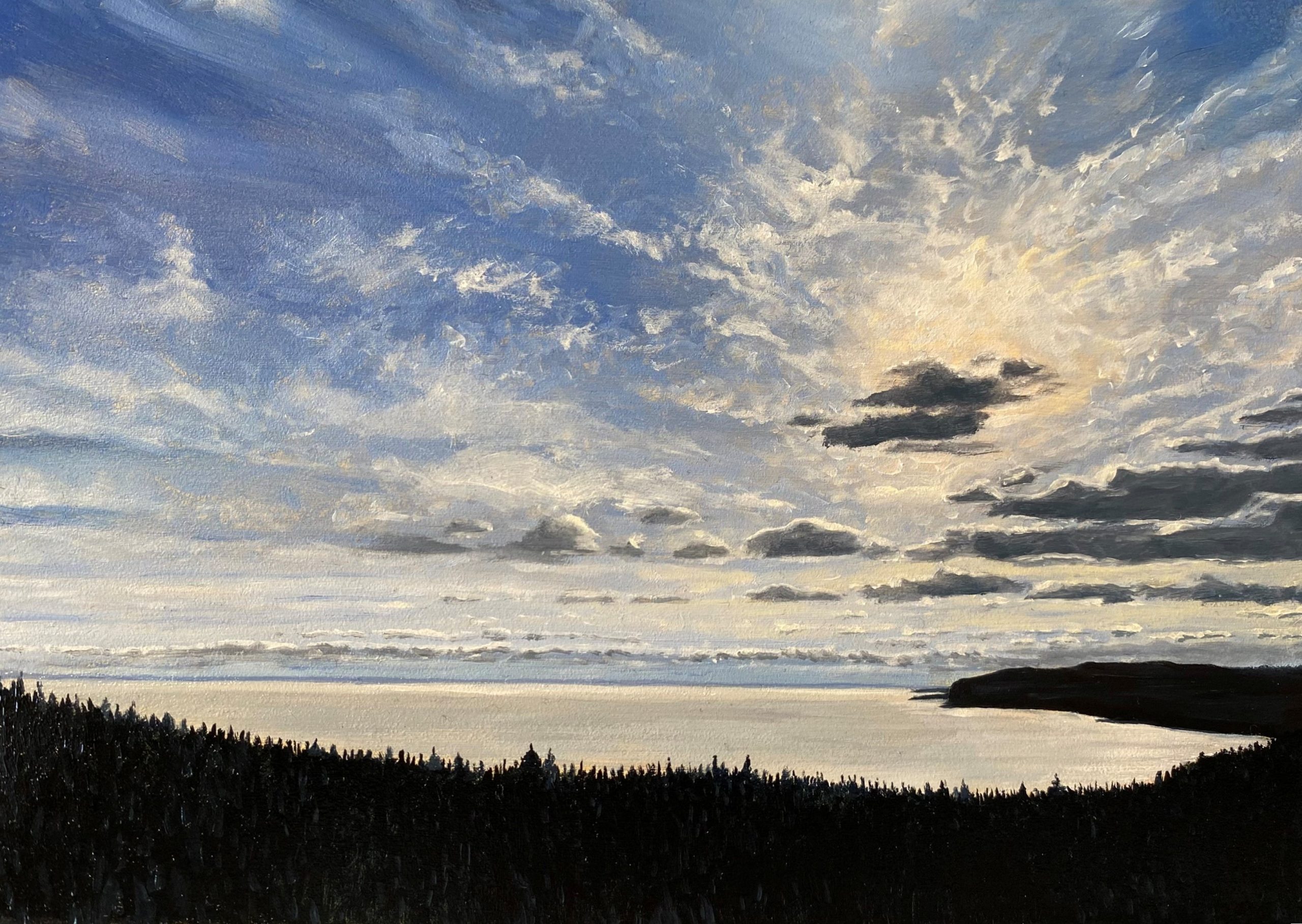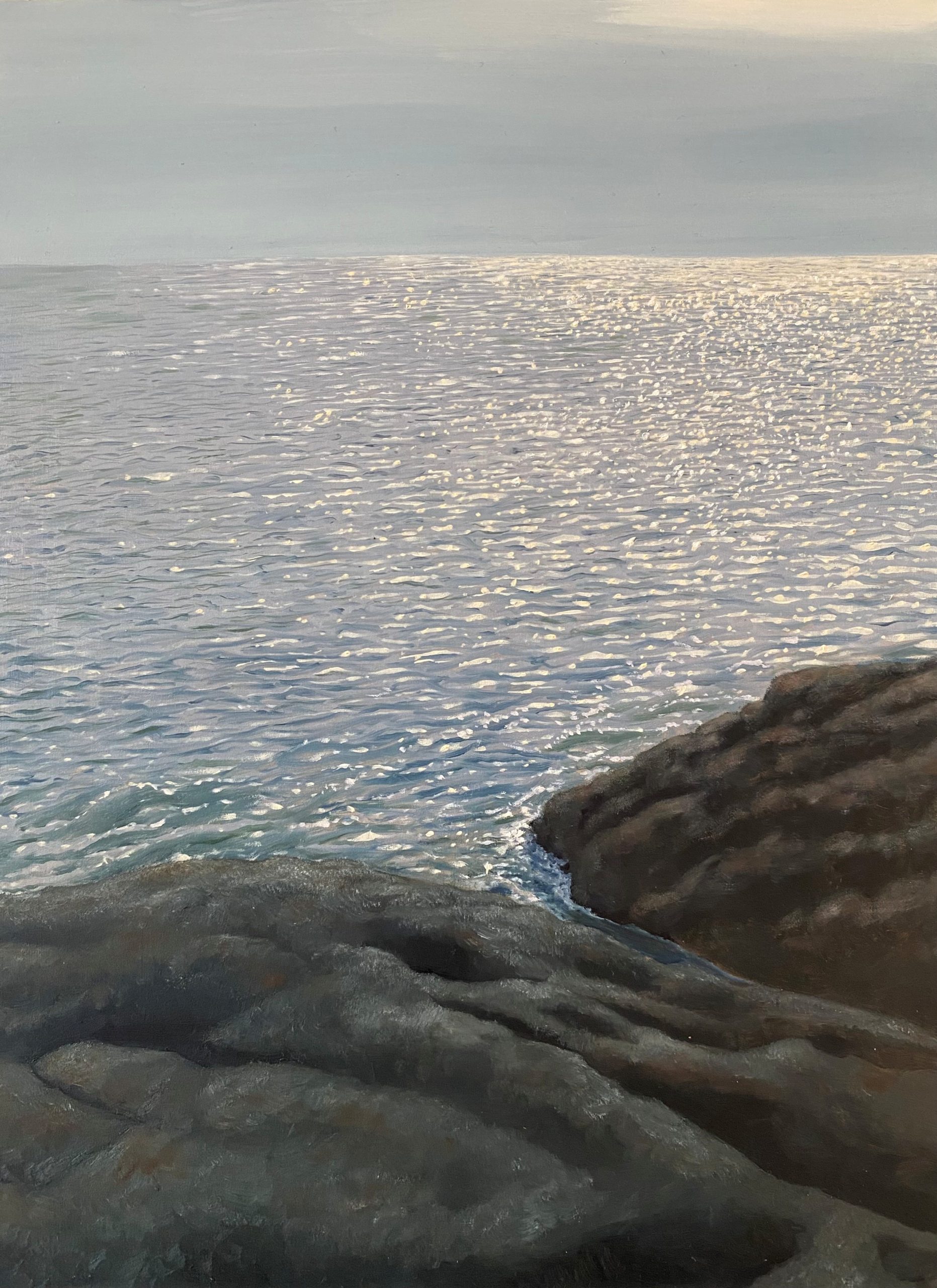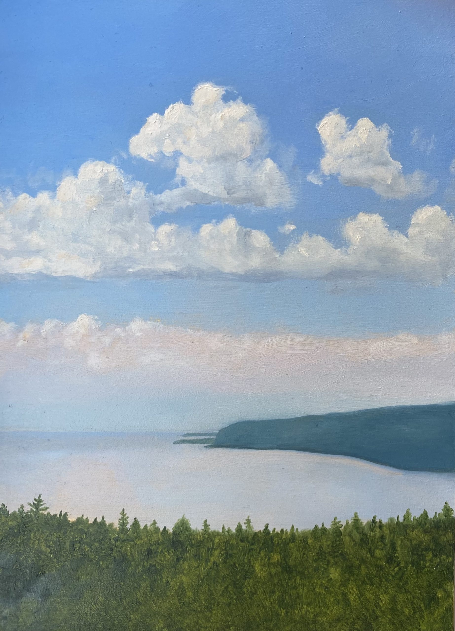 Groveland Gallery is pleased to present an exhibition of paintings by Minneapolis artist, Kit Wilson. A full-time artist, Wilson began exhibiting at Groveland Gallery in 2002. Lost Mountain will consist of 27 paintings of Lake Superior’s North Shore. Wilson contemplates Superior’s shifting characteristics from a single vantage point, documenting the lake’s surface, and changes in light and season. This sweeping grandeur belies the small format of the artwork; the scale invites a close view of the fine detail and micro brushwork Wilson is known for. Wilson writes of her work: